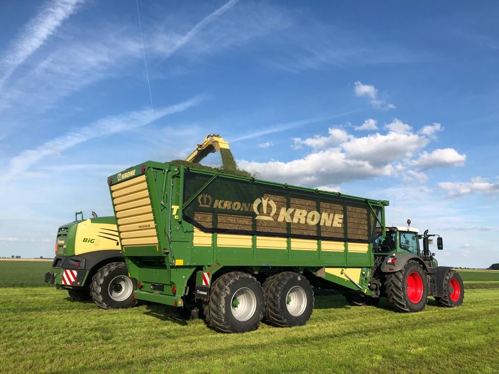 Het hakselen wordt uitgevoerd met een Krone Big X 580 hakselaar. Deze machine levert een goede hakselkwaliteit, zodat het gras zo optimaal mogelijk in de kuil komt. Voor de afvoer wordt gebruik gemaakt van 2 Krone TX 460 silagewagens. De wagens beschikken over doseerwalsen, hebben een inhoud van 46m3 engedwongen besturing. Ook kan de lading afgedekt worden door een ladingafdeksysteem. De wagens beschikken over brede banden 800/45/30.5.